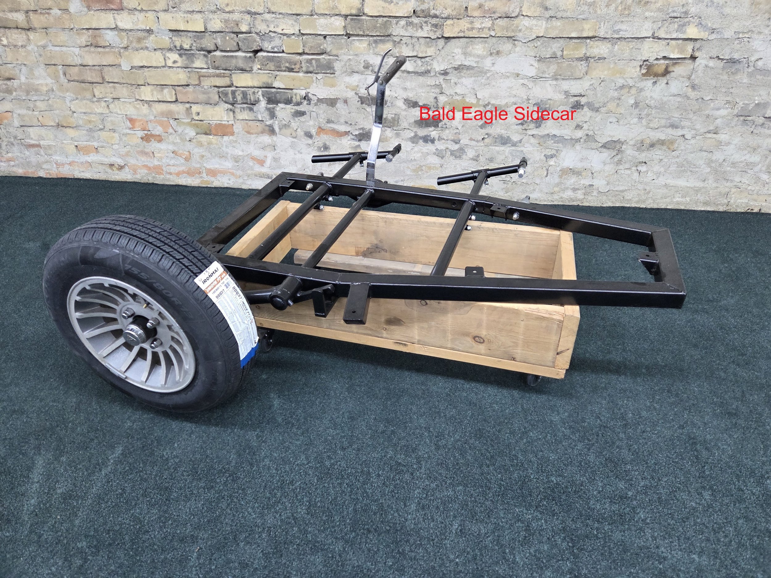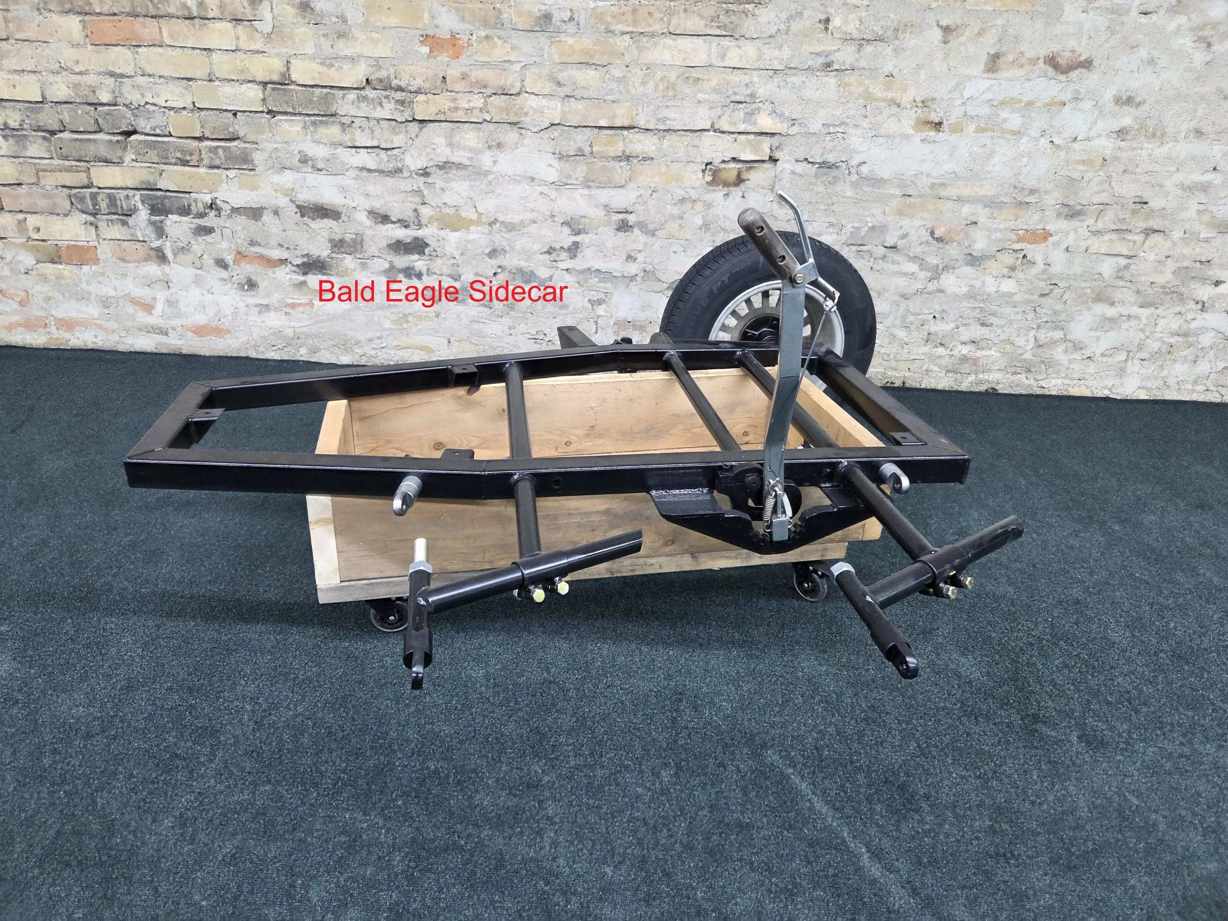 CJ Sidecar ( Chang Jiang ) Frame with additional step, steering damper, Gas Can, Luggage Rack, Spare Tire mount in trunk, Converted to clevis mounts, Brake, Was last mounted to a HD, Additional photos upon request.