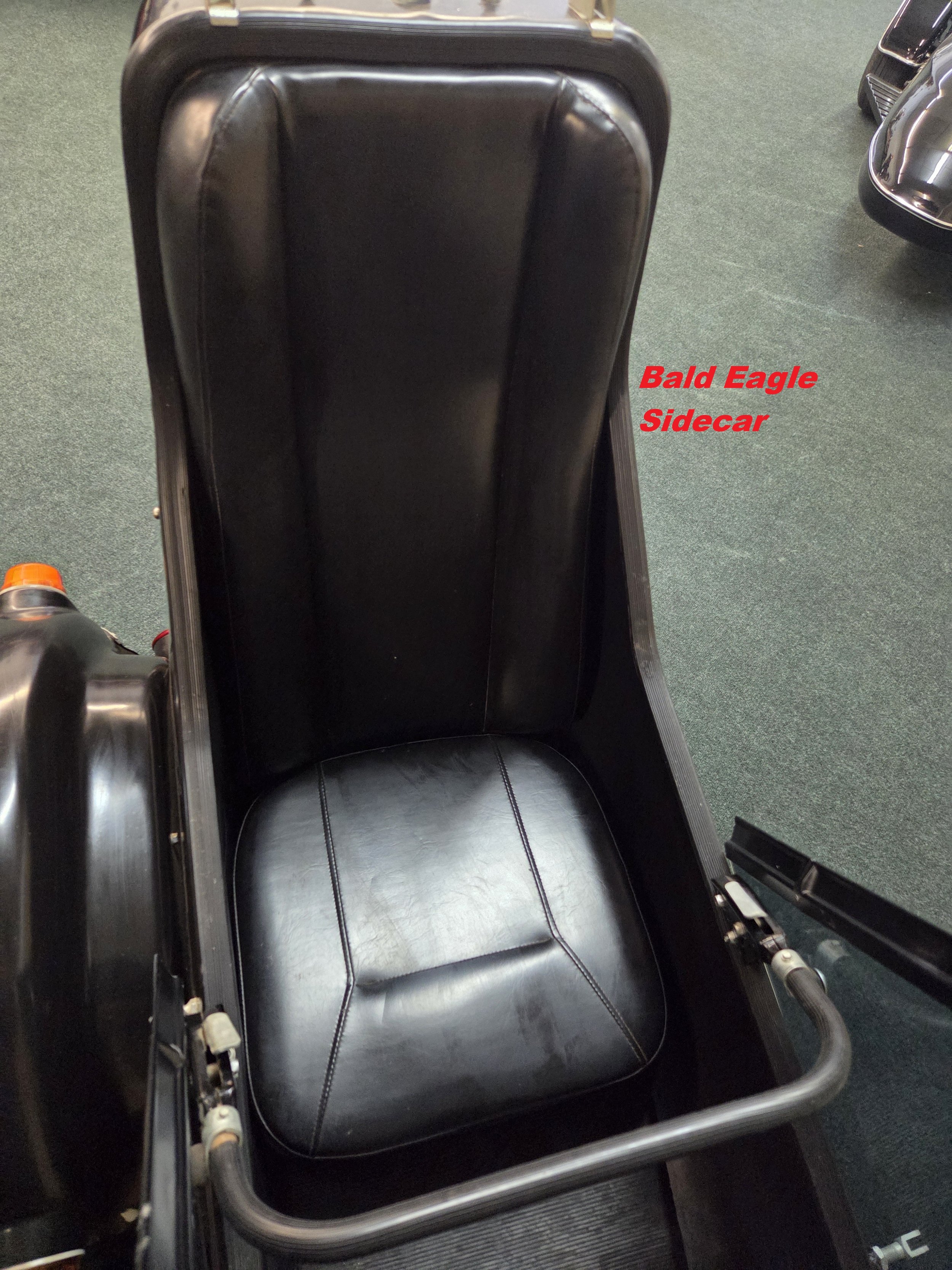 Electric lean, Good tire, Seat Belt, Car bucket seat. Cup holder and inside pocket, Front Vent and Aux Battery Box. Was hooked up to a R100RT last. Can mount to many cycles.